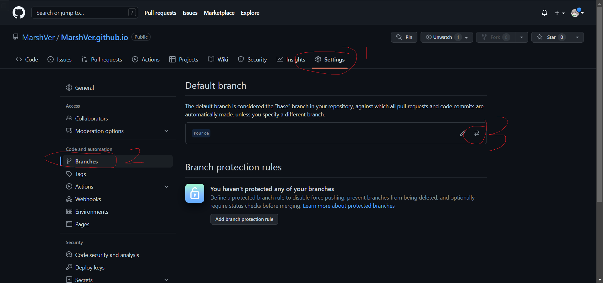 - 将GitHub博客仓库的默认分支改为main(非源文件)(因为源文件导入vercel可能会运行错误)