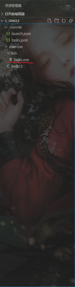 运行C语言代码时,运行文件将显示在bin文件夹中。