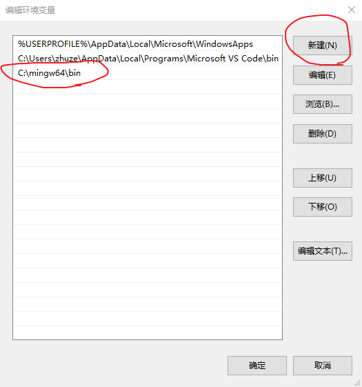 为了让程序访问这些编译器,你需要添加gcc-bin文件夹的目录 (我的是 C: \mingw64 \ bin ,选择地址复制) 到用户变量Path中。