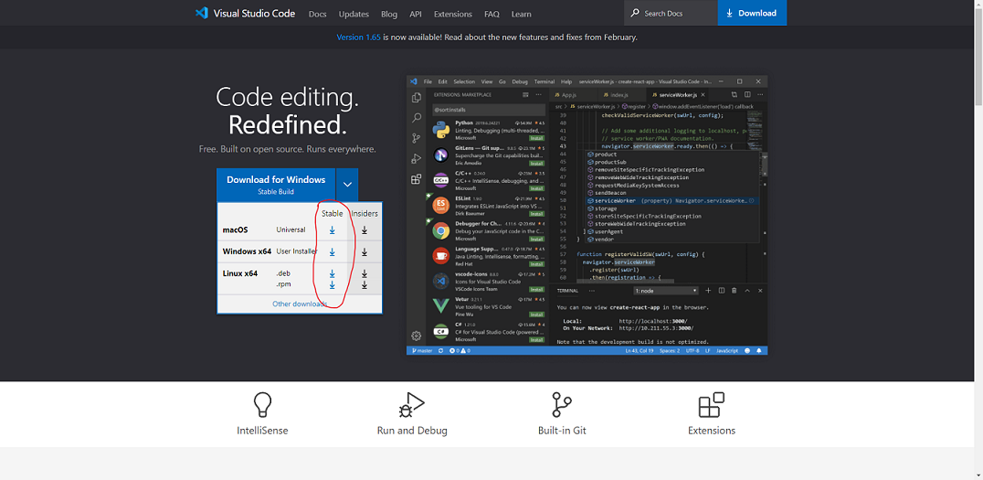 首先,去 https://code.visualstudio.com/ 下载对应操作系统的VScode,下载稳定版本。