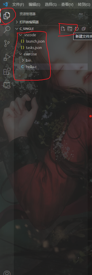 打开你的VScode,并打开C_Single文件夹,新建如图文件夹和文件: